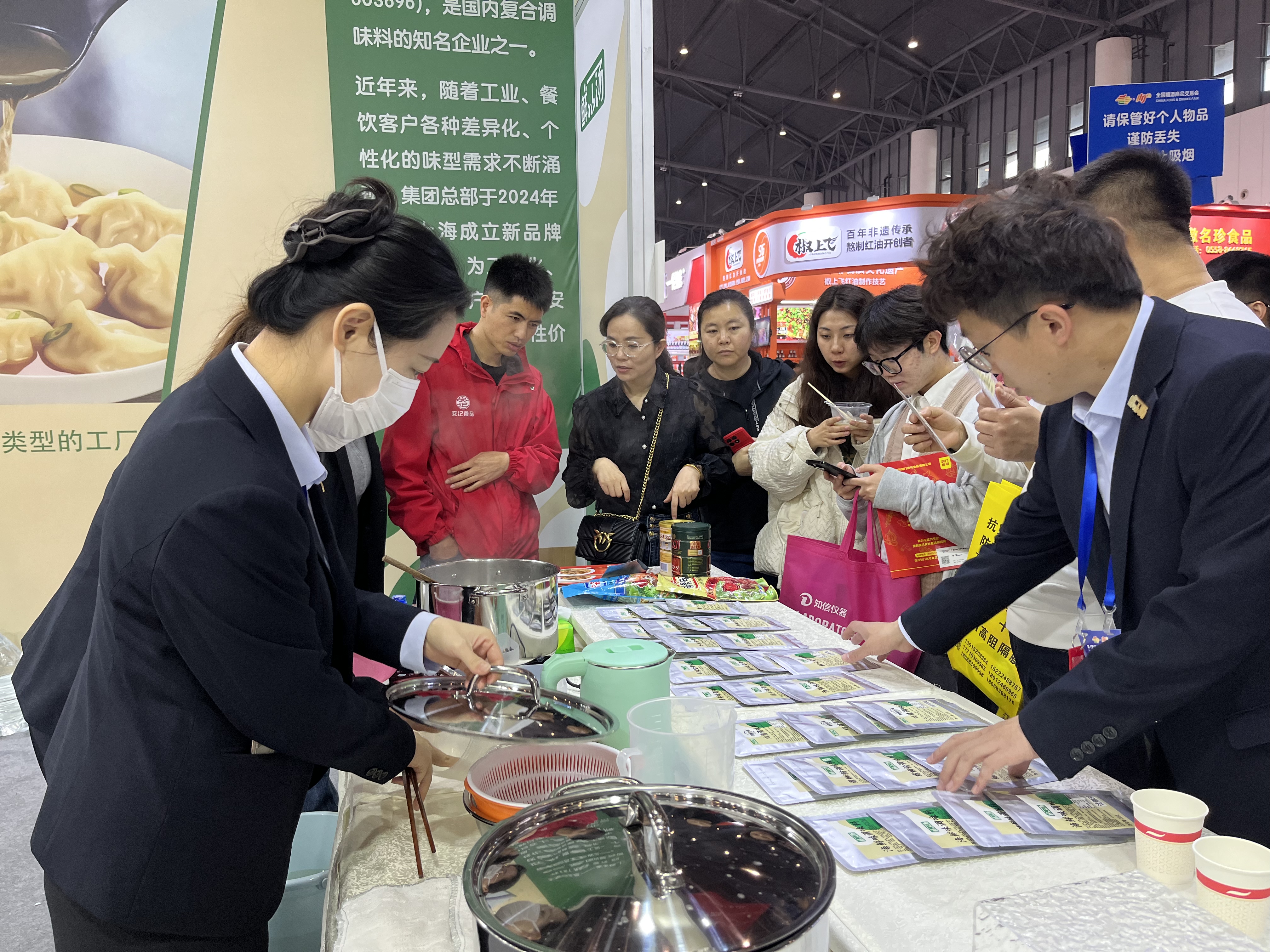 展會(huì)開(kāi)始,安記生物團(tuán)隊(duì)成員以最佳的精神風(fēng)貌迎接觀展客戶。試吃組井然有序地派發(fā)試吃品螺螄粉,讓觀展商以最直接的形式了解我們的產(chǎn)品、風(fēng)味;客戶招待組則負(fù)責(zé)介紹產(chǎn)品,溝通客戶需求,讓更多伙伴了解“鮮以湯“品牌,與意向客戶建立友好關(guān)系。