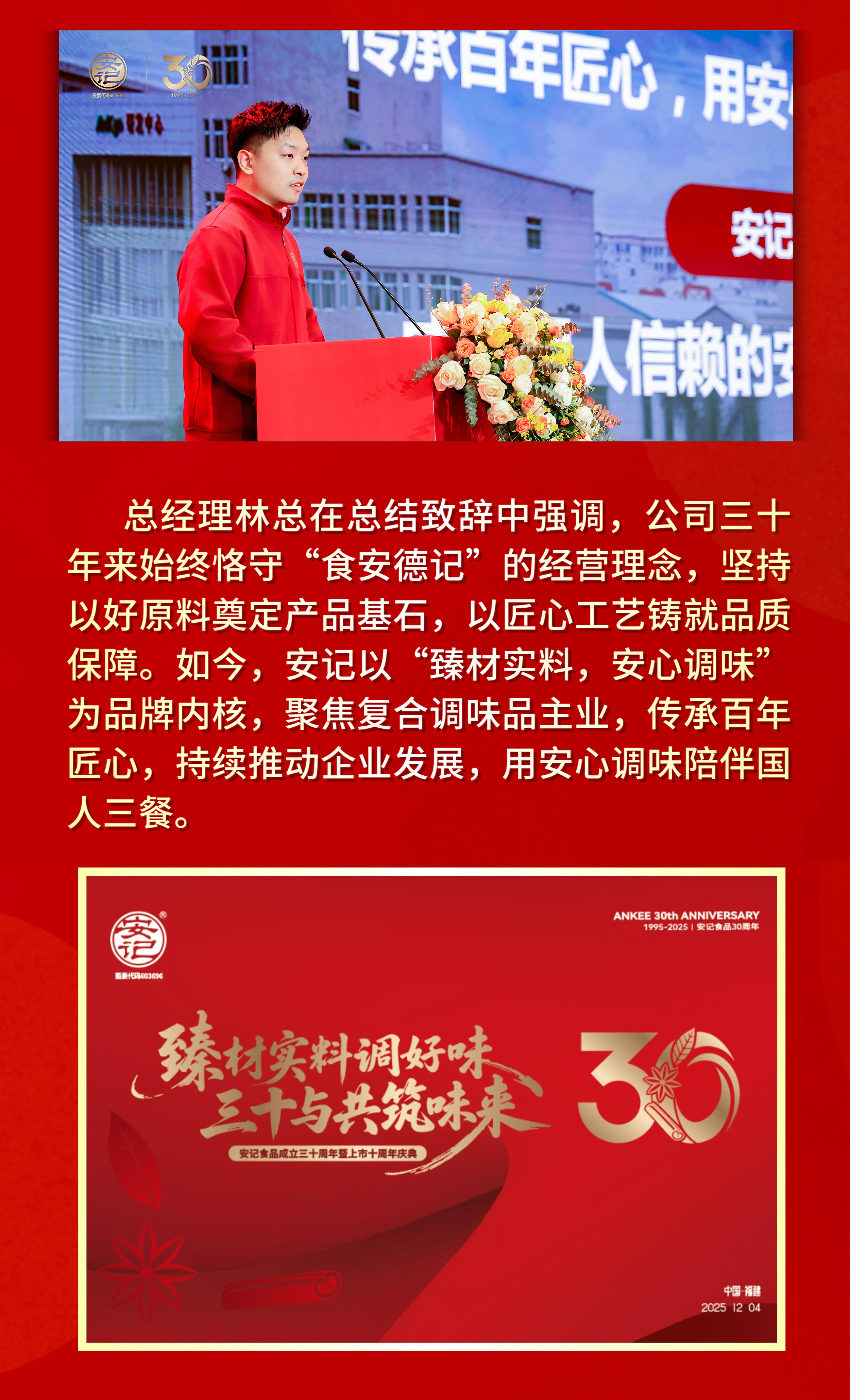 | “臻材實料調(diào)好味,三十與共筑味來”| 安記食品成立30周年暨上市十周年慶典圓滿成功 |